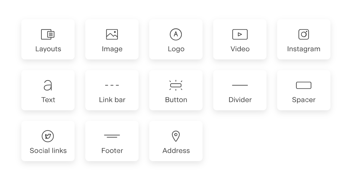 Easily add photos, video, instagram feeds and more by tapping the + symbol between sections. Update text and link colors, add branded photos, and add smart fields to personalize your communications.